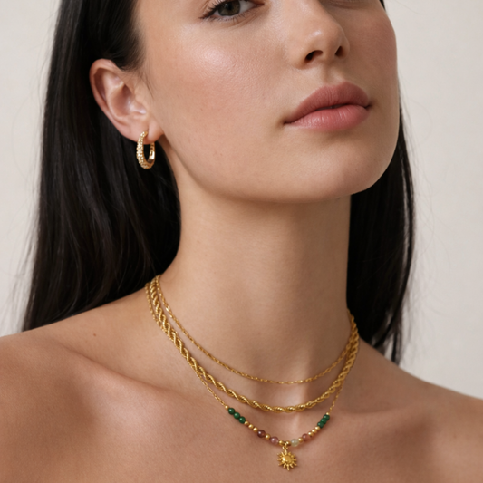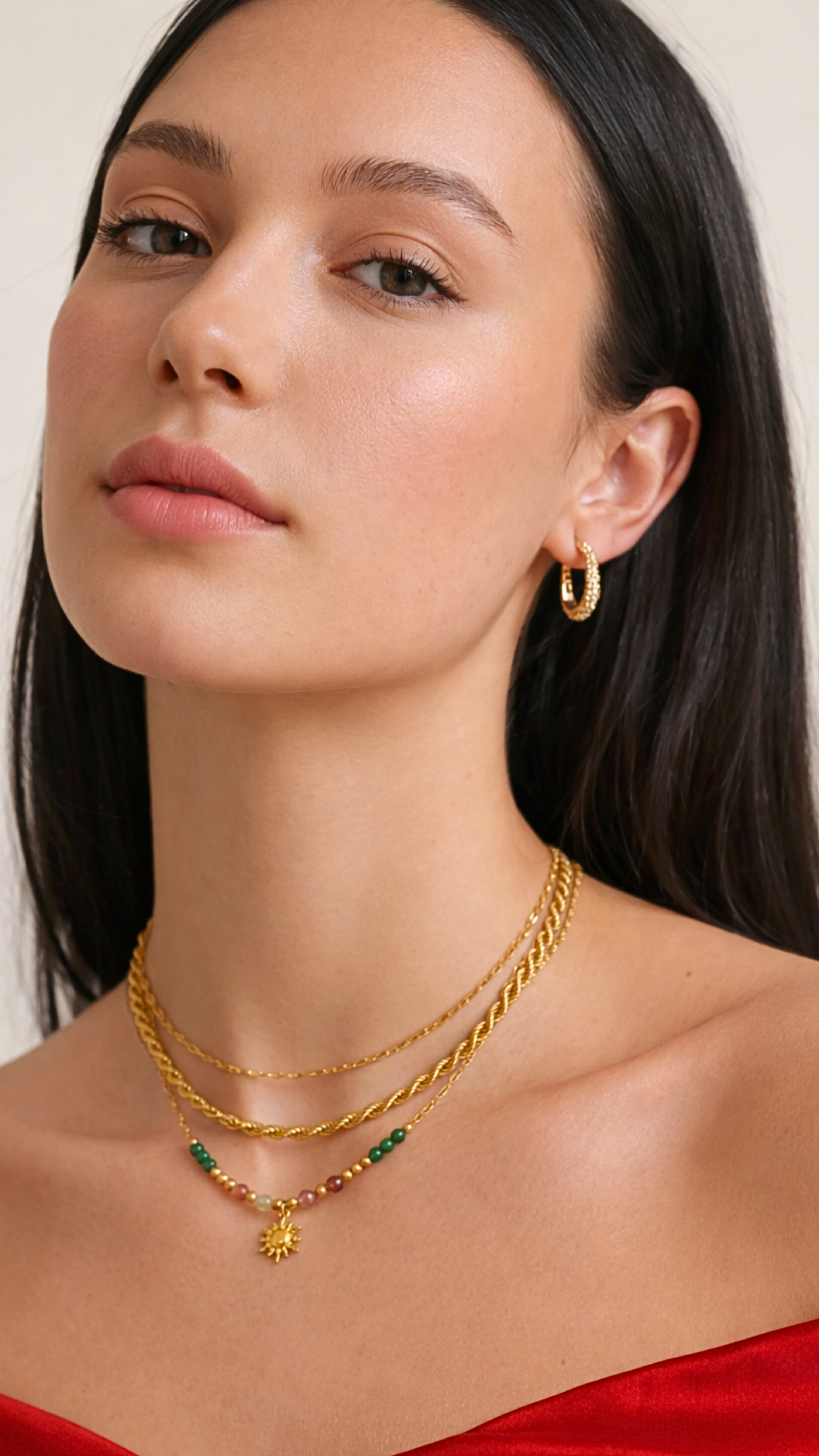 Our waterproof jewelry doesn’t just endure; it excels. It’s unbothered by a dip in the pool or even a cycle in the washing machine. Why? Because it’s built with a durable stainless steel core, wrapped in a gleaming layer of 18k real gold, made possible through the PVD process.