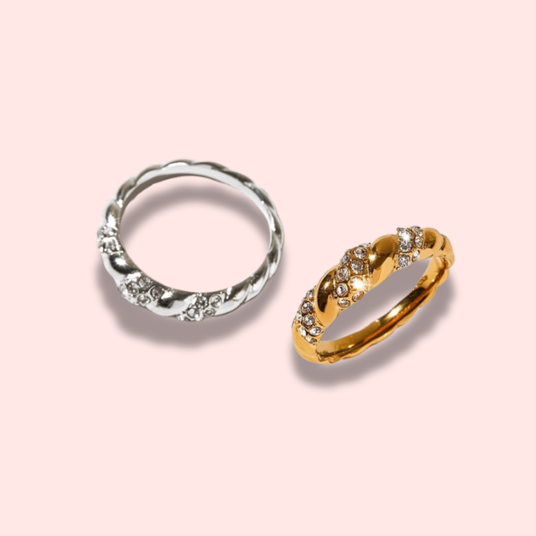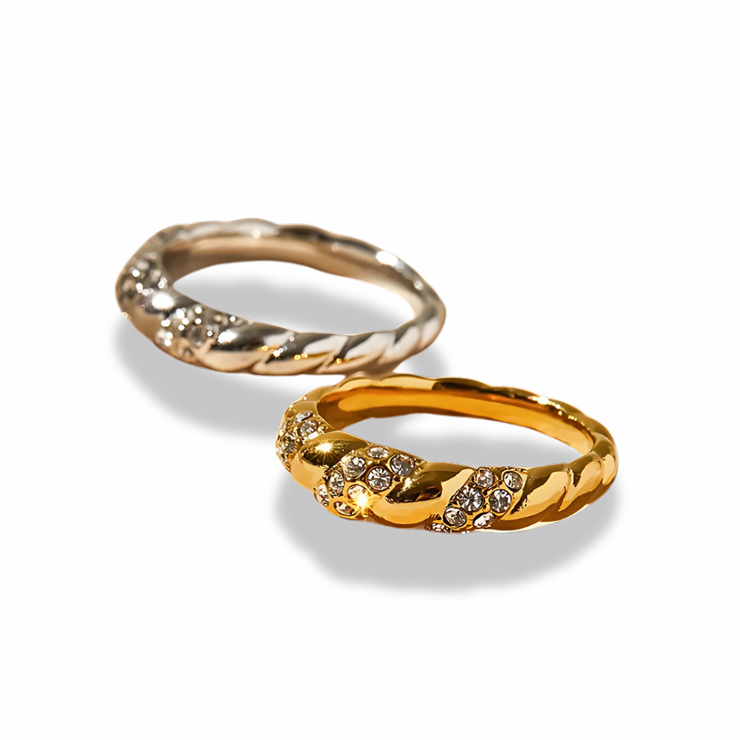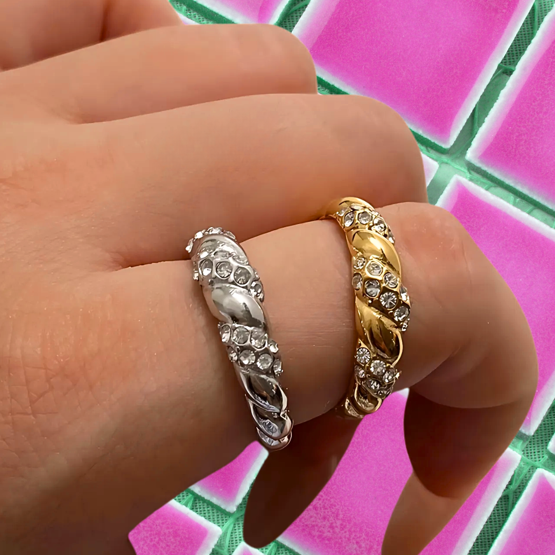 • Hibiscus features a twisted design adorned with shimmering crystals, perfect for adding a touch of glamour to any outfit.